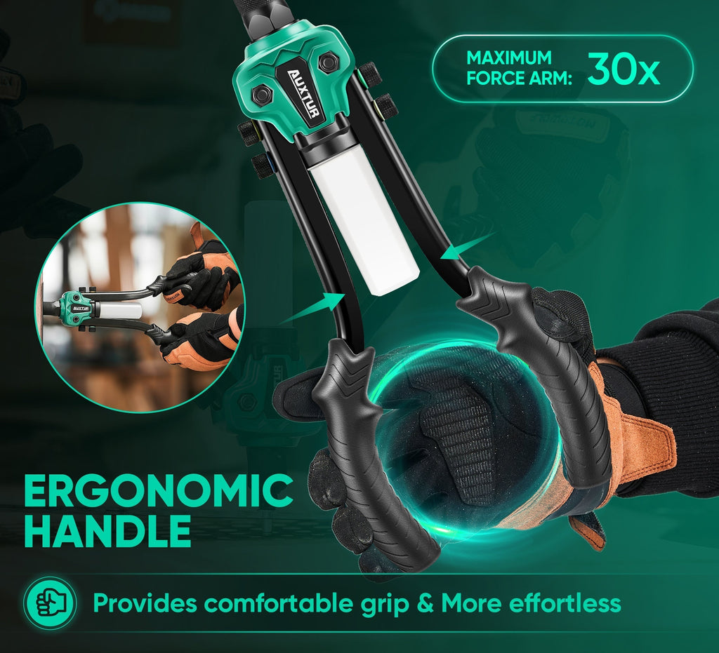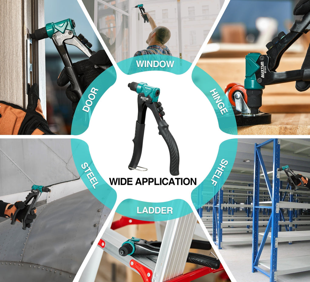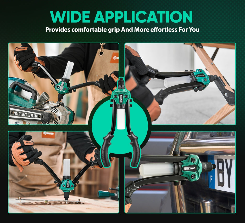 【Wide Applications】The riveters tool-set with ergonomic handles maximizes leverage and for easy operation, saves energy. The delicate Shape Heavy Duty Nut rivet tool is Ideal for Working in Hard-to-reach Areas. Great for Vehicle modifications/Furniture/Metal/Iron/plastic/plate riveting.