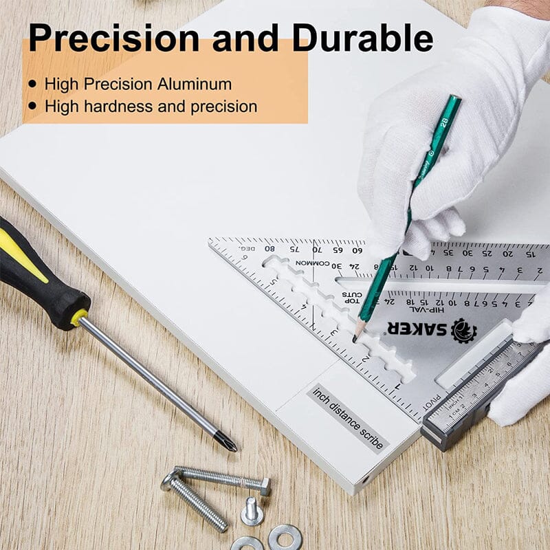 Superior Quality: The SAKER® Rafter Square with Level is crafted from precise heavy-gauge aluminum alloy, ensuring durability, high hardness, and corrosion resistance. The square undergoes multiple polishing processes, resulting in a smooth surface that is gentle on the hands and makes it convenient to carry around.
